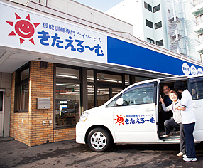 きたえるーむは、身体機能向上や介護予防をもっと気軽に、安心して行える機能訓練専門のデイサービスです。