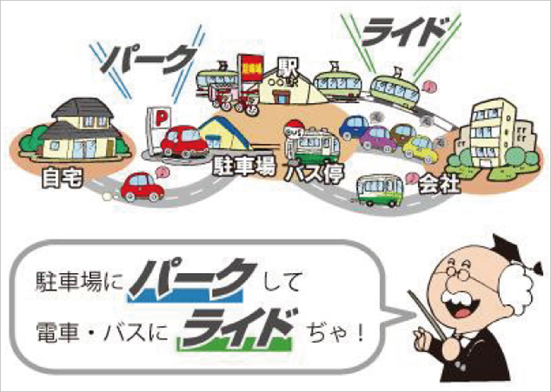 ご自宅から車でフジグラン緑井に駐車(パーク)して、電車・バスなど公共交通機関に乗って(ライド)通勤するパーク&ライドを実施中。渋滞でイライラすることもなく、市内までラクラクアクセス♪実質5,000円/月でご利用可能です。まずは無料体験をしてみませんか?